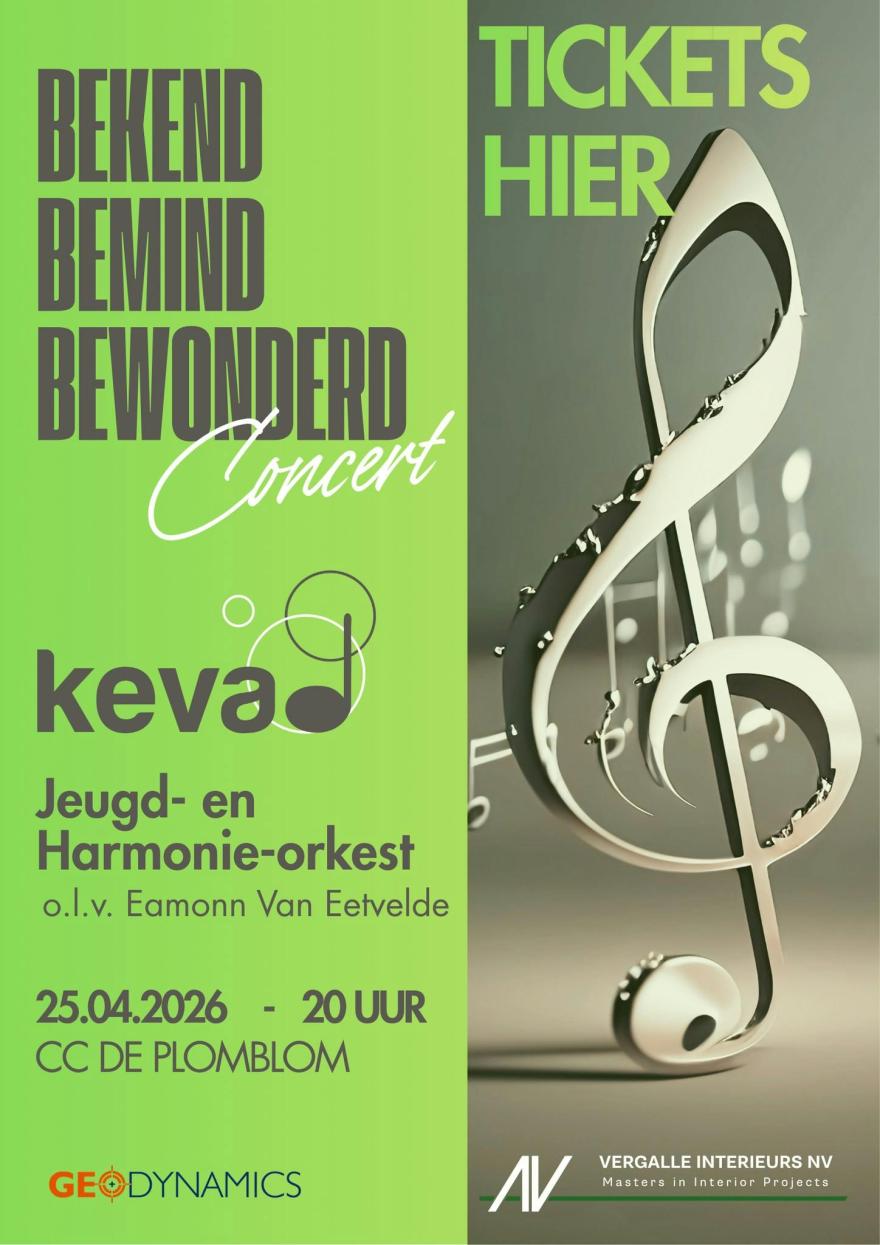 KEVA-Harmonie en het KEVA Jeugdorkest uit Aspelare nodigen muziekliefhebbers van harte uit voor hun jaarlijkse lenteconcert ‘Bekend, Bemind, Bewonderd’. Het concert vindt plaats op zaterdag 25 april 2026 om 20u in CC De Plomblom.